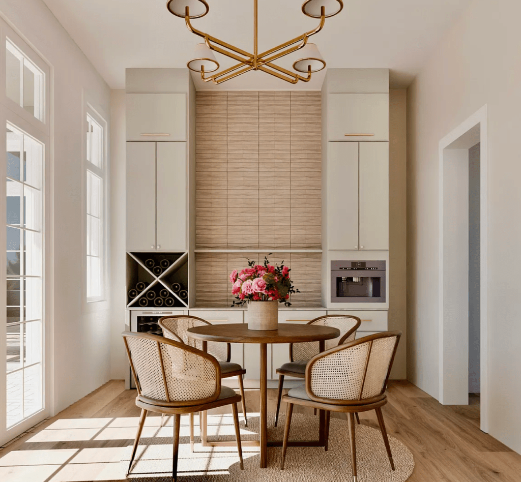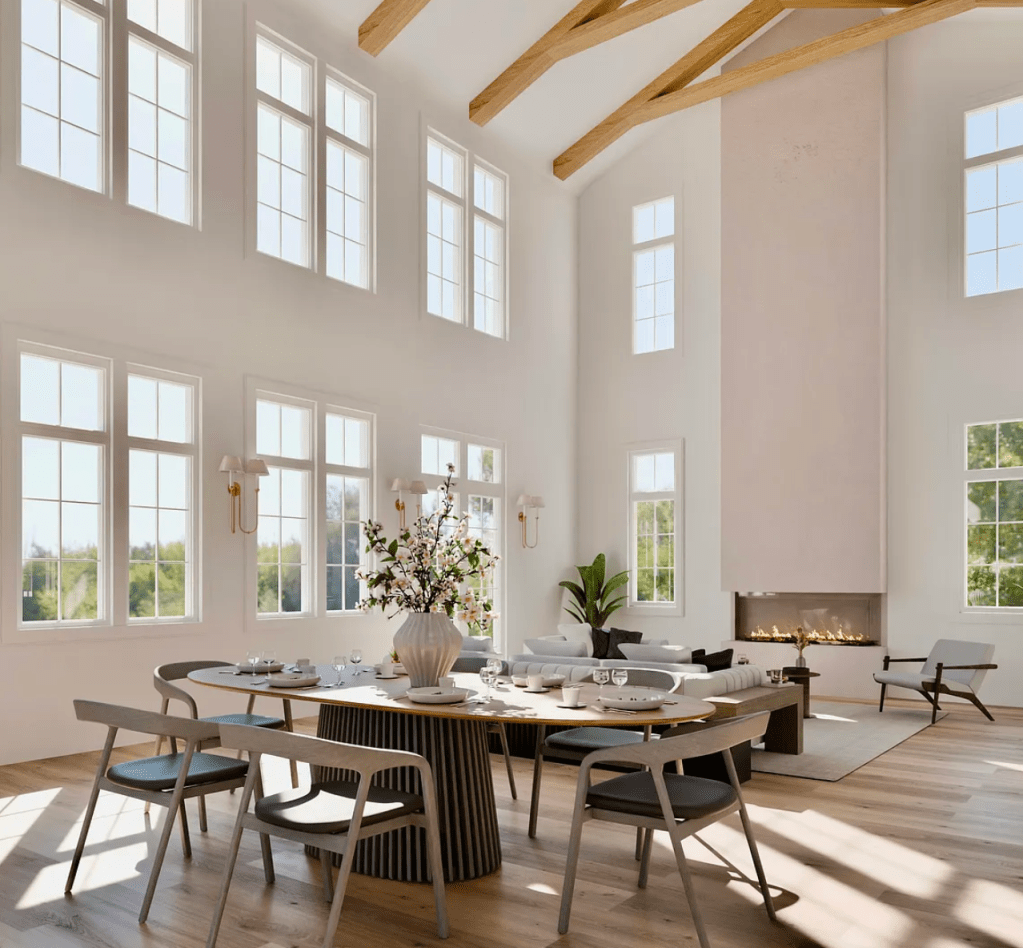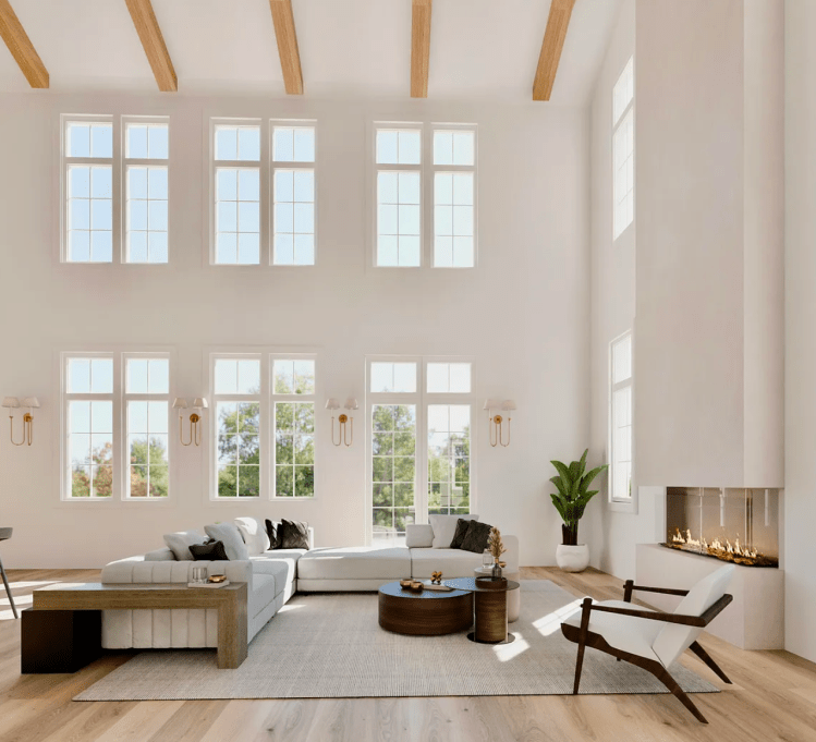 The grand living room welcomes you with vaulted ceilings, wood-beam accents, and a dramatic sense of space that flows seamlessly into the chef’s kitchen. The kitchen is outfitted with Thermador appliances, quartz countertops, a walk-in pantry, and elegant additions such as a built-in wine cooler and coffee barperfect for everyday luxury or hosting. The primary suite on the main level provides a serene retreat, featuring natural light-filled windows, painted nickel-gap ceilings, and a spa-inspired bathroom with dual vanities, an oversized walk-in shower, soaking tub, and marble flooring. The adjoining custom walk-in closet includes built-ins, a wall safe, and a convenient washer and dryer.